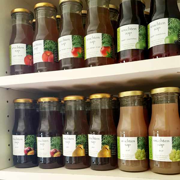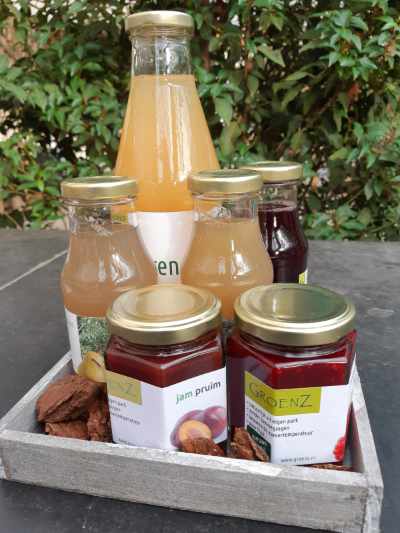 Het concept dat Groenz hanteert is bijzonder. Bij Groenz zijn namelijk ook het fruit en zelfs de fruitbomen te koop. “Terug naar de roots”, noemt Hendriks dat. Met ‘puur eigen biologisch fruit uit het park’ produceert Groenz elk jaar zo’n 1.400 flessen appelsap (750ml), 500 mixdrankjes (250ml) en 500 potjes stroop en jam. Hendriks: “Al naar gelang de productie in het park en wat over blijft, wordt ons fruit ook gebruikt op vlaaien, in smoothies en voor verse fruitsappen.”